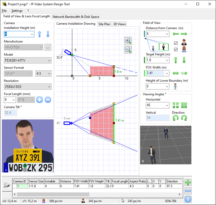 При выборе видеокамеры необходимо определить её назначение: обнаружение, различение либо идентификация.